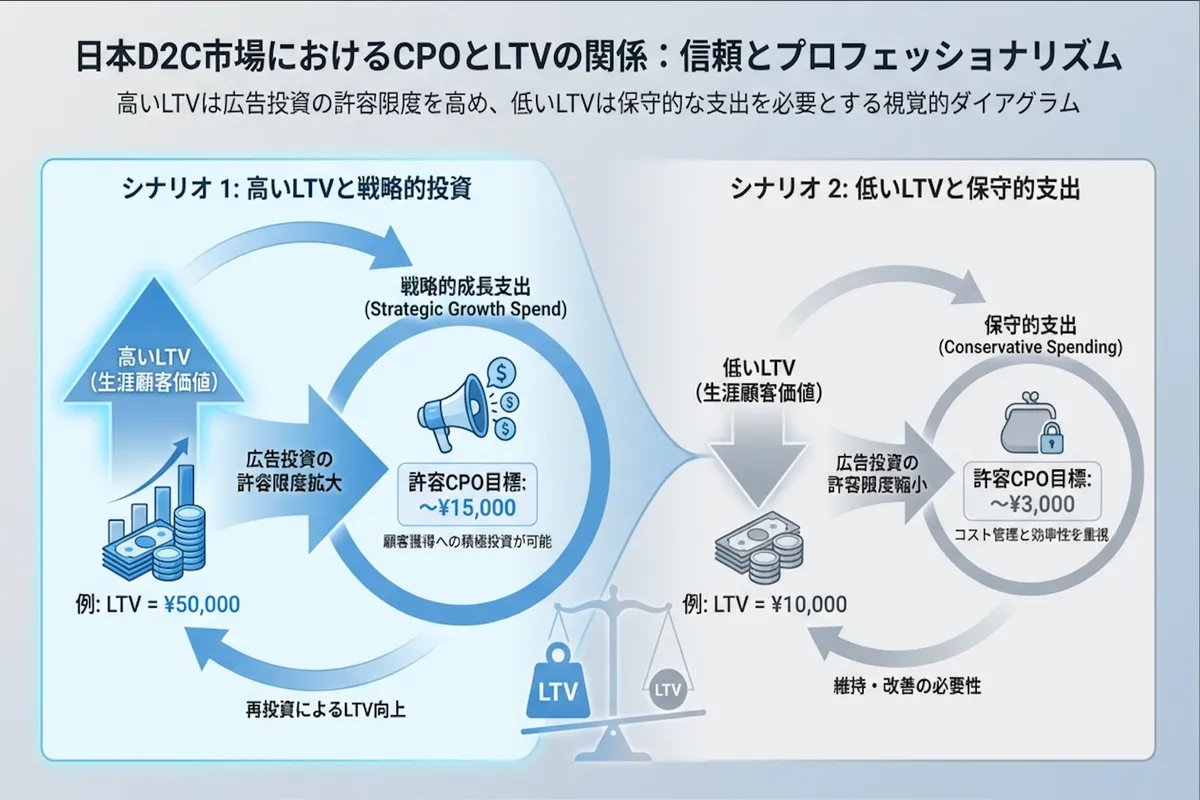 | 重要な関係 | LTVが高いほど限界CPOも上がる |