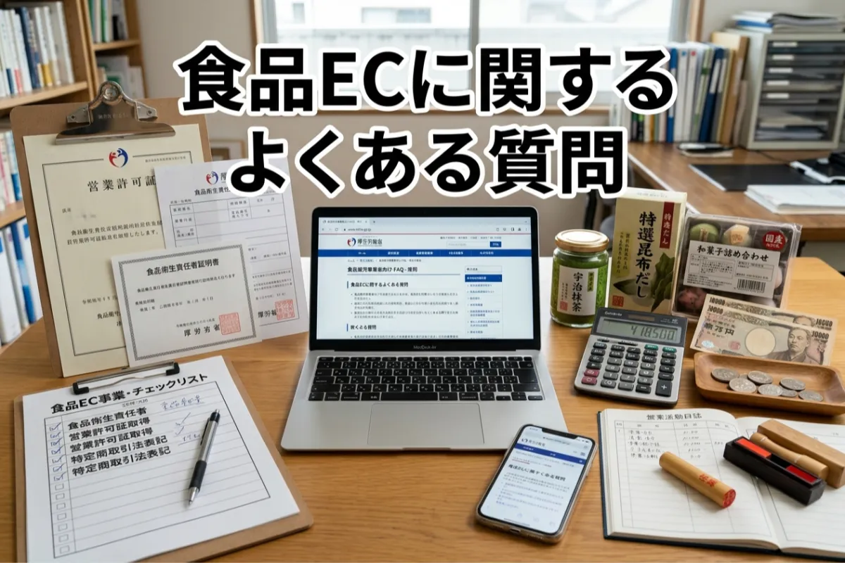食品ECを検討している事業者からは、法規制や費用、成功可能性に関する質問が多く寄せられます。ここでは、日本国内の制度や公開情報をもとに、食品ECに関する代表的な疑問に回答します。